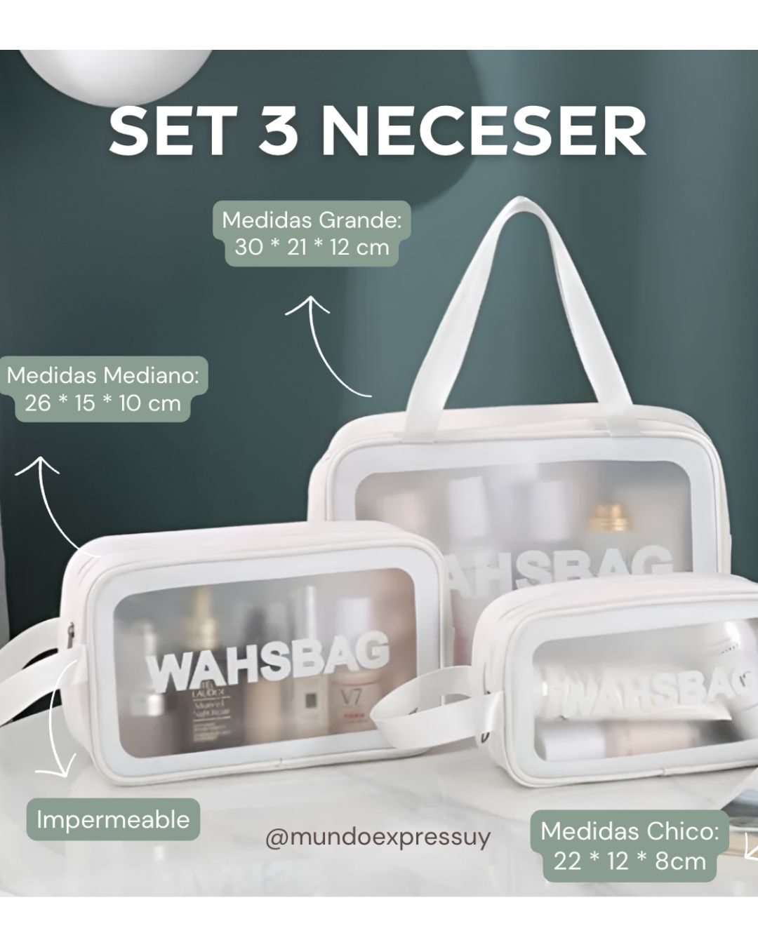 Set Washbag Neceser Impermeable - 3 Piezas